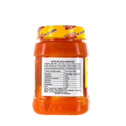 Ingrédients : Soja 60%, piment frais, sel, eau, alcool, exhausteur de goût, glutamate de mononium, Dinatri 5' - gualyte, Dinatri 5' - inosinat, Aspartam, Acesufam potassium, conservateur : benzoate de sodium et sorbate de potassium